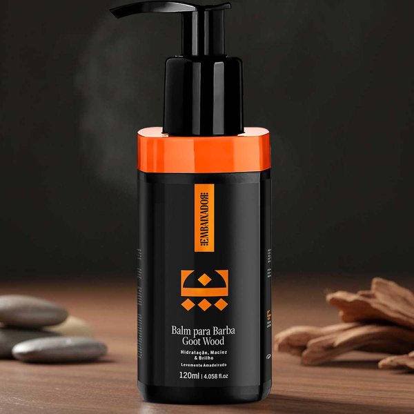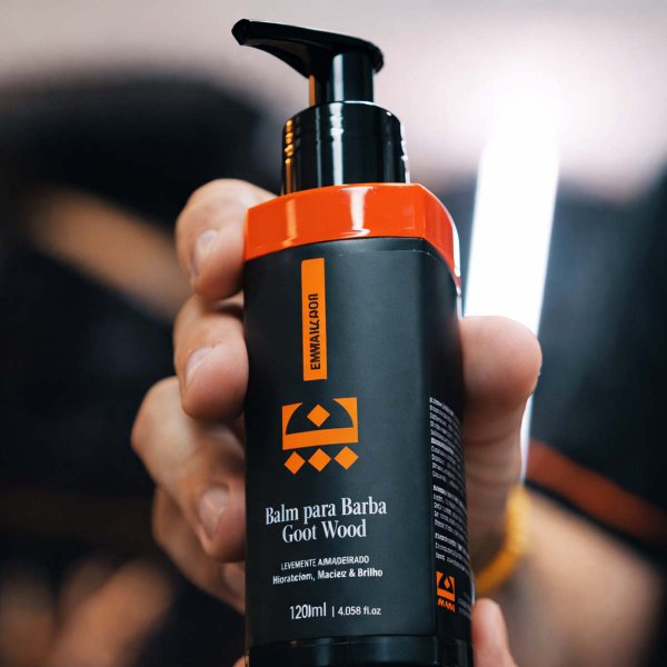 Com a barba limpa e seca. Coloque uma pequena quantidade do balm para barba GOOT WOOD na palma da mão, esfregue para emulsionar, em seguida aplique em toda a barba